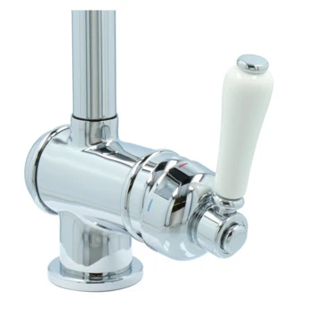 De Atlantic keukenkraan Charles met hendel Chroom bestaat uit een verchroomde keukenkraan van 31 cm met 2 flexibele aansluitslangen, bevestigingsmateriaal en montagehandleiding. De Charles keukenkraan heeft een draaibare uitloop van 360° waarmee je eenvoudig plaats maakt bij je gootsteen. Met de eenhendelbediening draai je met 1 hand de kraan naar de gewenste temperatuur. Je bespaart water door de ingebouwde eco-klik. De ingebouwde weerstand in de hendel zorgt ervoor dat je de kraan niet direct op de hoogste straalstand zet. Wens je toch een hardere straal, dan zet je de hendel gewoon verder open. Aan de anti-kalk perlator hecht kalk zich moeilijk vast en veeg je er makkelijk met de hand af. Deze retro vormgegeven keukenkraan heeft een mooie glanzende chromen afwerking en een klassieke handgreep. Gebruik alleen water en een zachte doek om de kraan schoon te maken. Gebruik geen schurend, bijtend, azijnhoudend of agressief schoonmaakmiddel. Op de kraan heb je 5 jaar garantie.