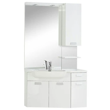 De hoogglans witte Fabulous-badmeubelset linkshoekig van 100cm breed past dankzij de slanke vormgeving in bijna iedere badkamer. De uit hoogwaardig MDF vervaardigde badmeubelset bestaat uit een onderkast, spiegelkast en wastafel. De onderkast en spiegelkast zijn voorzien van deuren en laden met softclose scharnieren en ladegeleiders waardoor deze zacht en geluidloos sluiten. De aluminium handgrepen zorgen voor een goede grip en geven de met 4 laklagen afgewerkte linkshoekige badmeubelset een chique uitstraling. De wastafel met overloop is gemaakt van gemalen kunstmarmer (polybeton) dat makkelijk schoon te houden is. Let op: bij deze wastafel zit het kraangat aan de linkerkant van het blad, gezien als je voor het meubel staat. Het hoogglans witte badmeubel linkshoekig beschikt over een handig planchet waarop je bijvoorbeeld jouw parfum of tandenborstel plaatst. De lichtkoof die je erbij krijgt geleverd, maakt deze badmeubelset 100cm uit de serie Fabulous compleet.