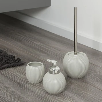 De Sealskin Toiletborstel met houder Convex Lichtgrijs is gemaakt uit keramiek. De afwerking van deze wc-borstelhouder is een lichtgrijze pasteltint en heeft een reliëf in de vorm van verticale gebogen lijnen. De houder is geschikt om op de grond te plaatsen en biedt ruimte voor 1 wc-borstel. Deze Scandinavische trend past in elke badkamer. Vervolledig deze Convex serie van Sealskin met de bijhorende beker en zeepdispenser. Je vindt deze sanitaire accessoires ook in andere pasteltinten, nl. lichtaqua en lichtroze.