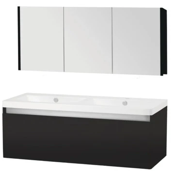 Bijpassende kolomkast en verlichting zijn tevens verkrijgbaar. De wastafelkast, spiegelkast en kolomkast worden voorgemonteerd geleverd en zijn eenvoudig te installeren.