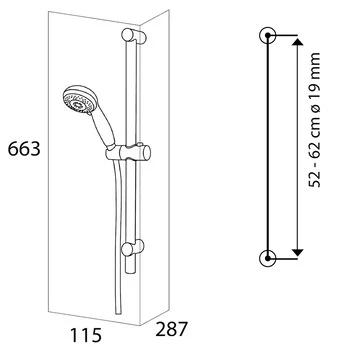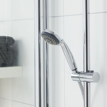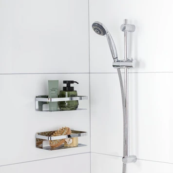 De doucheset Valencia van Tiger bestaat uit een handdouche, doucheslang en -stang met handdouchehouder en verstelbare muursteunen. De handdouche met een diameter van 7,5 cm heeft 3 straalstanden. Door de toepassing van Neoperl® technologie bespaar je tot 40% water. Deze technologie zorgt er met een dynamische o-ring voor dat er altijd een constante hoeveelheid water doorgelaten wordt. Bij een hoge druk wordt veel water bespaard, bij lage druk wordt het comfort juist verhoogd door lucht toe te voegen aan het uitstromende water. Je bespaart dus water en je doucht altijd comfortabel. De douchekop draai je naar keuze naar de standen vol, bruisend of massage. Met de houder stel je eenvoudig de hoogte van de handdouche in. De ronde douchekop is uitgevoerd in chroom. Door de siliconen nopjes kan je kalk makkelijk met de hand afvegen. Doordat 1 muursteun verstelbaar is, kun je de set over je oude boorgaten vastschroeven. De doucheslang heeft een universele 1/2″aansluiting en past op elke douchekraan. Dit product is onderdeel van het Splash eco assortiment: een Tiger lijn met waterbesparende producten.