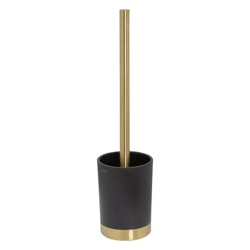 De vrijstaande toiletborstelhouder uit de Tune serie is uitgevoerd in de kleuren geborsteld messing en mat zwart. De onderzijde van de toiletborstel met houder is voorzien van kunststof voetjes ter bescherming van de ondergrond. De Tune serie bevat een groot aantal aanvullende accessoires voor de badkamer en het toilet.