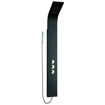 De Van Marcke Douchekolom Erie Zwart is een zwarte zuil van roestvrij staal. De douche heeft een ingebouwde regendouche en watervaldouche. Verder heeft dit douchesysteem nog twee jetvlakken en een thermostatische kraan die er voor zorgt dat je nooit onder een te hete douche terecht komt. Zeer handig voor de allerkleinsten!